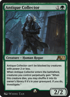 This creature can't be blocked by creatures with power 2 or less. When this creature enters, creatures you control perpetually gain "When this creature dies, you may shuffle it into its owner's library if it's in your graveyard. If you do, investigate." (Create a colorless Clue artifact token with "{2}, Sacrifice this artifact: Draw a card.")