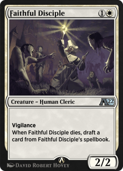 Vigilance When Faithful Disciple dies, draft a card from Faithful Disciple's spellbook.