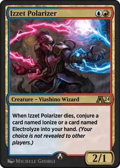When Izzet Polarizer dies, conjure a card named Ionize or a card named Electrolyze into your hand. (Your choice is not revealed to other players.)