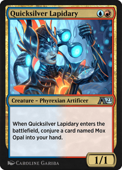When Quicksilver Lapidary enters, conjure a card named Mox Opal into your hand.