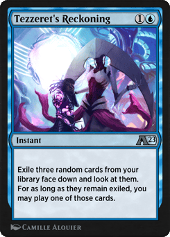 Exile three random cards from your library face down and look at them. For as long as they remain exiled, you may play one of those cards.