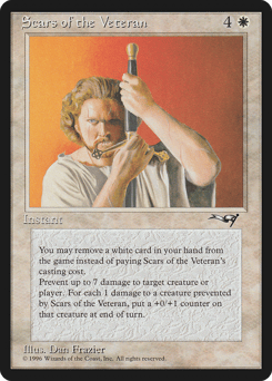 You may exile a white card from your hand rather than pay this spell's mana cost. Prevent the next 7 damage that would be dealt to any target this turn. If it's a creature, put a +0/+1 counter on it for each 1 damage prevented this way at the beginning of the next end step.