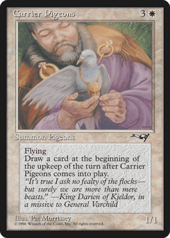 Flying When this creature enters, draw a card at the beginning of the next turn's upkeep.