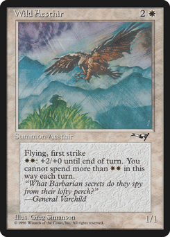 Flying, first strike {W}{W}: This creature gets +2/+0 until end of turn. Activate only once each turn.