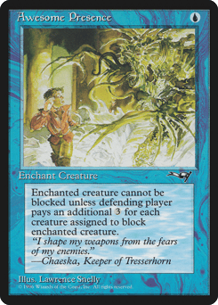 Enchant creature Enchanted creature can't be blocked unless defending player pays {3} for each creature they control that's blocking it.
