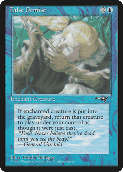 Flying When this creature dies, return it to the battlefield under its owner's control at the beginning of the next end step and you skip your next draw step. {4}{W}: Exile this creature.