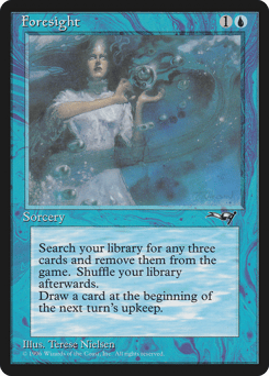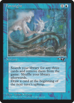 Search your library for three cards, exile them, then shuffle. Draw a card at the beginning of the next turn's upkeep.