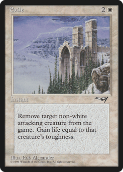 Exile target nonwhite attacking creature. You gain life equal to its toughness.