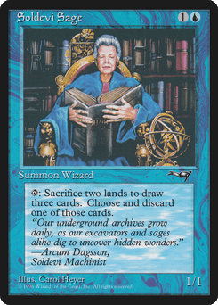 {T}, Sacrifice two lands: Draw three cards, then discard one of them.