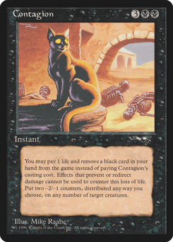 You may pay 1 life and exile a black card from your hand rather than pay this spell's mana cost. Distribute two -2/-1 counters among one or two target creatures.