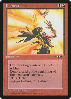 Counter target instant spell if it's blue. Draw a card at the beginning of the next turn's upkeep.