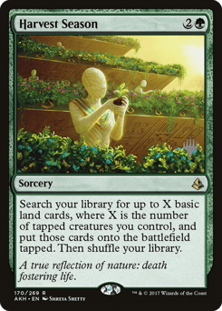 Search your library for up to X basic land cards, where X is the number of tapped creatures you control, put those cards onto the battlefield tapped, then shuffle.