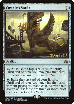 {2}, {T}: Exile the top card of your library. Until end of turn, you may play that card. Put a brick counter on this artifact. {T}: Exile the top card of your library. Until end of turn, you may play that card without paying its mana cost. Activate only if there are three or more brick counters on this artifact.