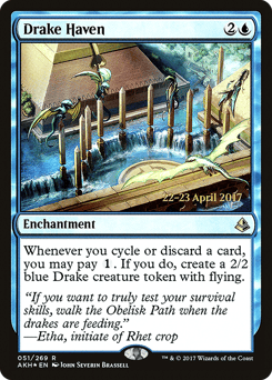 Whenever you cycle or discard a card, you may pay {1}. If you do, create a 2/2 blue Drake creature token with flying.