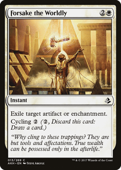 Exile target artifact or enchantment. Cycling {2} ({2}, Discard this card: Draw a card.)