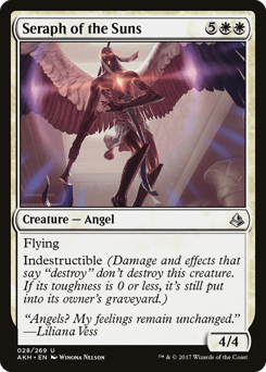 Flying Indestructible (Damage and effects that say "destroy" don't destroy this creature. If its toughness is 0 or less, it's still put into its owner's graveyard.)