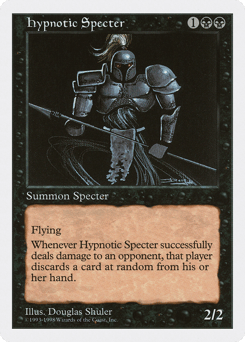 Flying Whenever this creature deals damage to an opponent, that player discards a card at random.