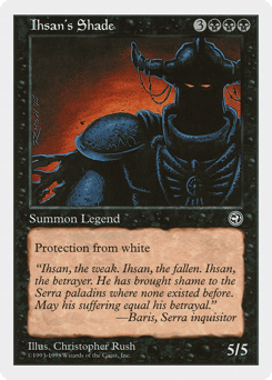 First strike (This creature deals combat damage before creatures without first strike.) Protection from white (This creature can't be blocked, targeted, dealt damage, or enchanted by anything white.)