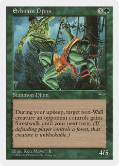 At the beginning of your upkeep, target non-Wall creature an opponent controls gains forestwalk until your next upkeep. (It can't be blocked as long as defending player controls a Forest.)