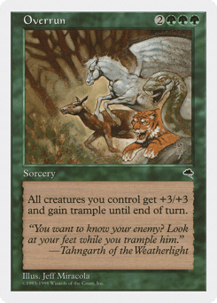 Creatures you control get +3/+3 and gain trample until end of turn. (Each of those creatures can deal excess combat damage to the player or planeswalker it's attacking.)