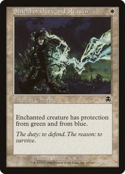 Enchant creature Enchanted creature has protection from green and from blue.