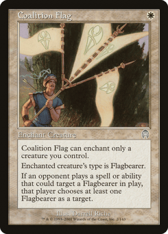 While an opponent is choosing targets as part of casting a spell they control or activating an ability they control, that player must choose at least one Flagbearer on the battlefield if able.