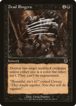 Destroy two target nonblack creatures unless either one is a color the other isn't. They can't be regenerated.
