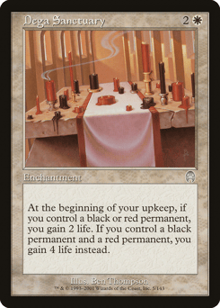 At the beginning of your upkeep, if you control a black or red permanent, you gain 2 life. If you control a black permanent and a red permanent, you gain 4 life instead.