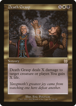 Death Grasp deals X damage to any target. You gain X life.