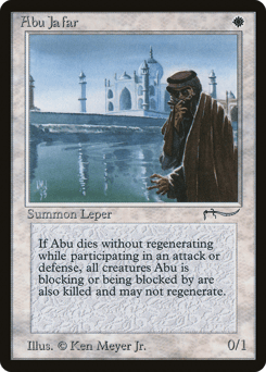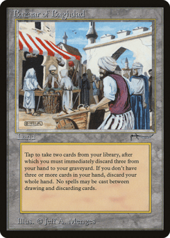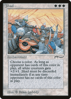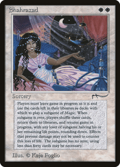 Whenever one or more other nontoken permanents with a name originally printed in the Arabian Nights expansion are on the battlefield, their controllers sacrifice them. Players can't cast spells or play lands with a name originally printed in the Arabian Nights expansion.