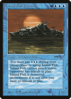 This creature doesn't untap during your untap step. At the beginning of your upkeep, you may pay {U}{U}{U}. If you do, untap this creature. This creature can't attack unless defending player controls an Island. When you control no Islands, sacrifice this creature.