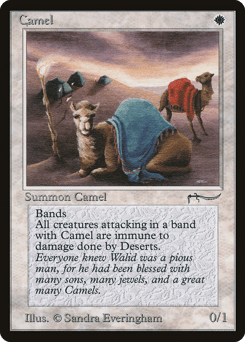 Banding (Any creatures with banding, and up to one without, can attack in a band. Bands are blocked as a group. If any creatures with banding you control are blocking or being blocked by a creature, you divide that creature's combat damage, not its controller, among any of the creatures it's being blocked by or is blocking.) As long as this creature is attacking, prevent all damage Deserts would deal to this creature and to creatures banded with this creature.