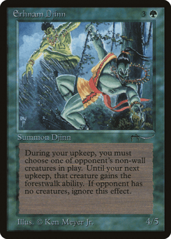 At the beginning of your upkeep, target non-Wall creature an opponent controls gains forestwalk until your next upkeep. (It can't be blocked as long as defending player controls a Forest.)