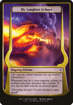 (An ongoing scheme remains face up until it's abandoned.) Whenever you set a non-ongoing scheme in motion, you may abandon this scheme. If you do, set that scheme in motion again.