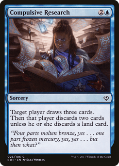 Target player draws three cards. Then that player discards two cards unless they discard a land card.