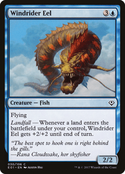 Flying Landfall — Whenever a land you control enters, this creature gets +2/+2 until end of turn.