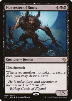 Deathtouch (Any amount of damage this deals to a creature is enough to destroy it.) Whenever another nontoken creature dies, you may draw a card.