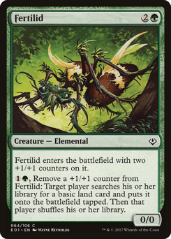 [+1]: Target land you control becomes a 4/4 Elemental creature with trample. It's still a land. [+1]: Untap up to four target Forests. [−7]: Search your library for any number of basic land cards, put them onto the battlefield, then shuffle. Those lands become 4/4 Elemental creatures with trample. They're still lands.