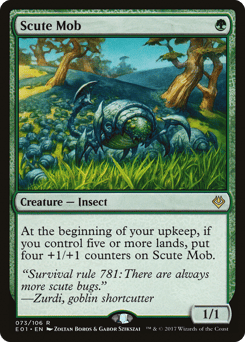 At the beginning of your upkeep, if you control five or more lands, put four +1/+1 counters on this creature.