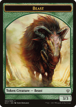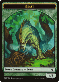Trample Landfall — Whenever a land you control enters, you may create a 4/4 green Beast creature token.