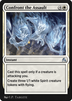 Cast this spell only if a creature is attacking you. Create three 1/1 white Spirit creature tokens with flying.