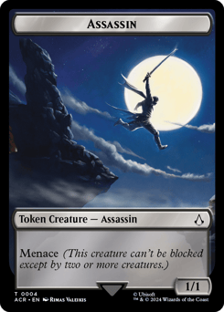 Whenever one or more nontoken creatures you control deal combat damage to a player, create a 1/1 black Assassin creature token with menace. (It can't be blocked except by two or more creatures.)