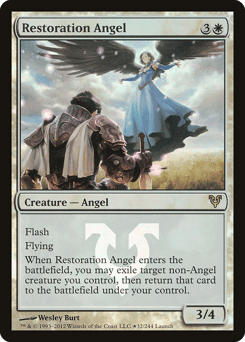 Flash Flying When this creature enters, you may exile target non-Angel creature you control, then return that card to the battlefield under your control.