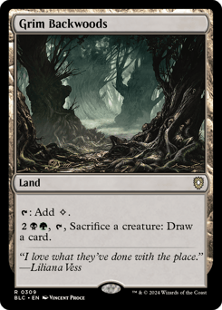 This land enters tapped unless you control a Swamp or a Forest. {T}: Add {B} or {G}.