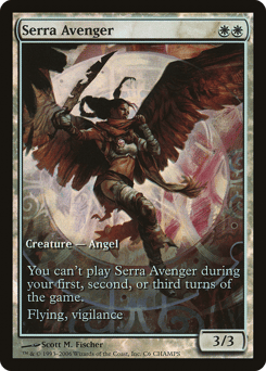 You can't cast Serra Avenger during your first, second, or third turns of the game. Flying, vigilance