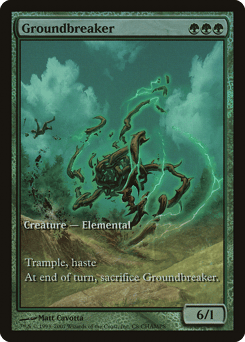 Trample, haste At the beginning of the end step, sacrifice this creature.