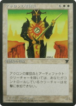Except for creatures named Akron Legionnaire and artifact creatures, creatures you control can't attack.