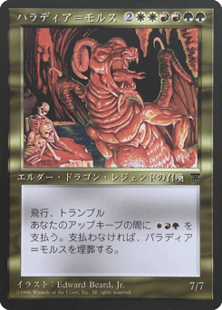 Flying, trample At the beginning of your upkeep, sacrifice Palladia-Mors unless you pay {R}{G}{W}.