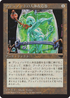 {T}, Sacrifice this artifact: Put a +1/+1 counter on target nonartifact creature. That creature becomes an artifact in addition to its other types.