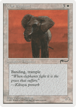 Trample; banding (Any creatures with banding, and up to one without, can attack in a band. Bands are blocked as a group. If any creatures with banding you control are blocking or being blocked by a creature, you divide that creature's combat damage, not its controller, among any of the creatures it's being blocked by or is blocking.)